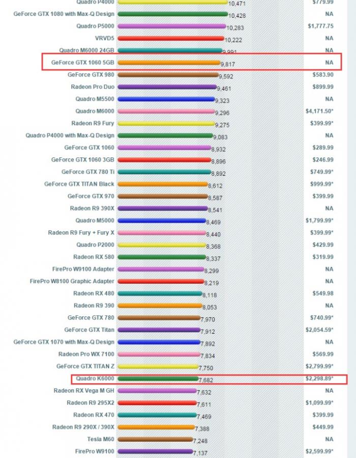 显卡想升级到丽台k6000,但是看了官网跑分,居然比gtx1060还低?