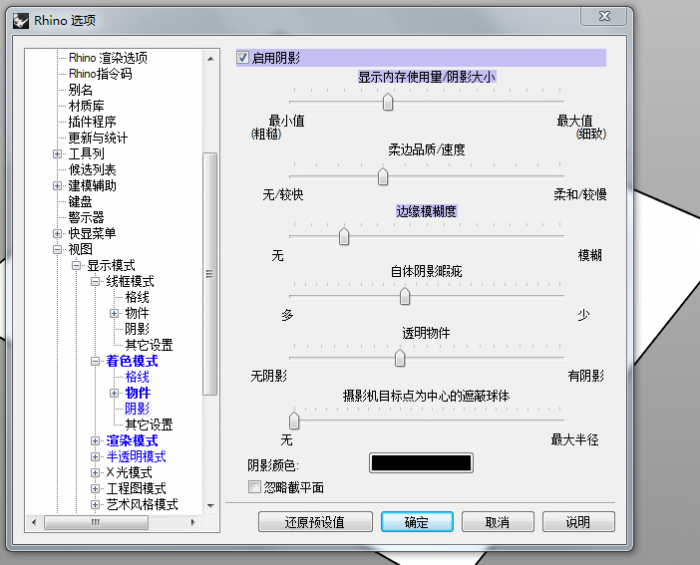 BIM问答|RHINO如何设置阴影?在rhino着色模式下,打开选项-视图-着色模式-阴影,并且打开太阳选项,物体仍然不能显示阴影。 微信公众号:xuebim 关注建筑行业BIM发展、研究建筑新技术,汇集建筑前沿信息! ← 微信扫一扫,关注我们+