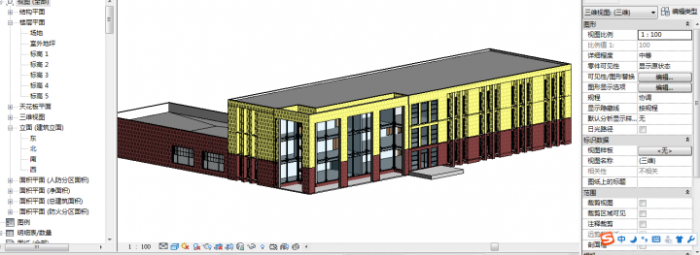 花了些时间通过火星revit教学视屏自学了revit建模的一些基本操作。从零基础开始,轴网、标高、墙体、幕墙、门窗、楼板、屋顶…基本上一栋综合楼模型已经建好了。就是下面这个样子。