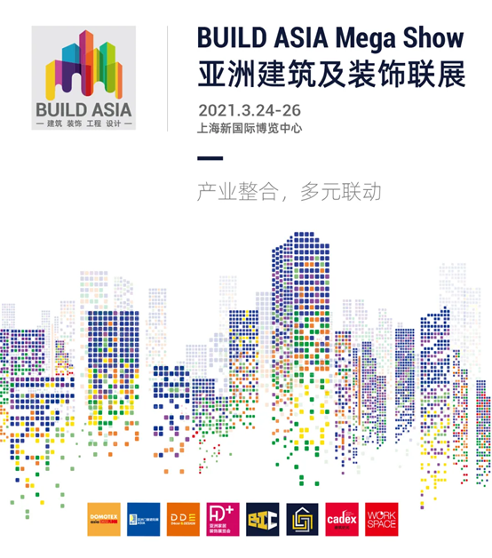 BUILD ASIA Mega Show亚洲建筑及装饰联展内容涵盖空间六面,建筑工业化,内装工业化,软装一体化;从地面到墙体,室内到户外,从建筑工程到软装家居全方位呈现,打造2021开年首个建筑及装饰行业的整合性跨界平台,为打通产业循环、市场循环、推进行业高质量发展提供支撑,助力参展商及观众在充满机遇的市场中开拓新的商机,达成更多贸易协作。