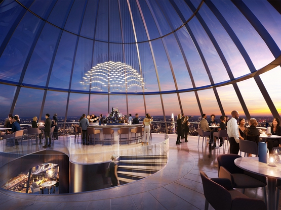 福斯特建筑工作室(Foster+Partners)透露了伦敦“郁金香塔”(Tulip)旅游景点的最新视觉效果图,显示了其内部和底部。