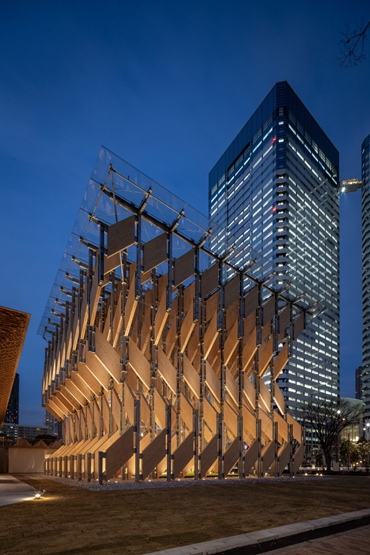 日本建筑师隈研吾(Kengo Kuma)在东京用交叉层压的木材建造了一个临时的袖珍公园和展览空间。