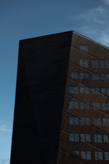 负碳发电办公楼以其11层的倾斜形式而闻名,其特点是陡峭的屋顶呈24度角,朝东立面上有一个45度的独特缺口。
