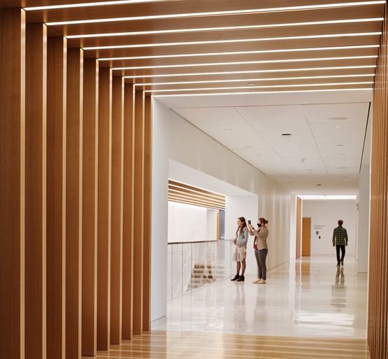 二楼的退伍军人休息室由木材构成,构成了天然材料调色板的一部分,包括石头、美国白橡木和泥灰。