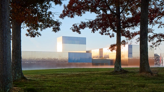 由不锈钢包裹的巨大建筑反映出美国陆军国家博物馆周围的树木,SOM建筑公司完成了这项工程。
