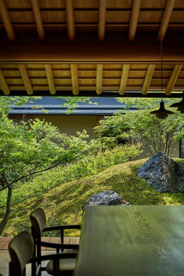 “在花园中央,有一块供奉神明的圣石。尽管石头是一种非常物质化的存在,但作为一处神圣空间它仍然具有超越性。我们觉得这种双重性会为这所小房子和花园带来无限延展性。由于中央圣石的存在,花园因此变成了模型化的比睿山。矮小的植物如苔藓,吊钟花和毛竹增加了视觉纵深感”,建筑师说。