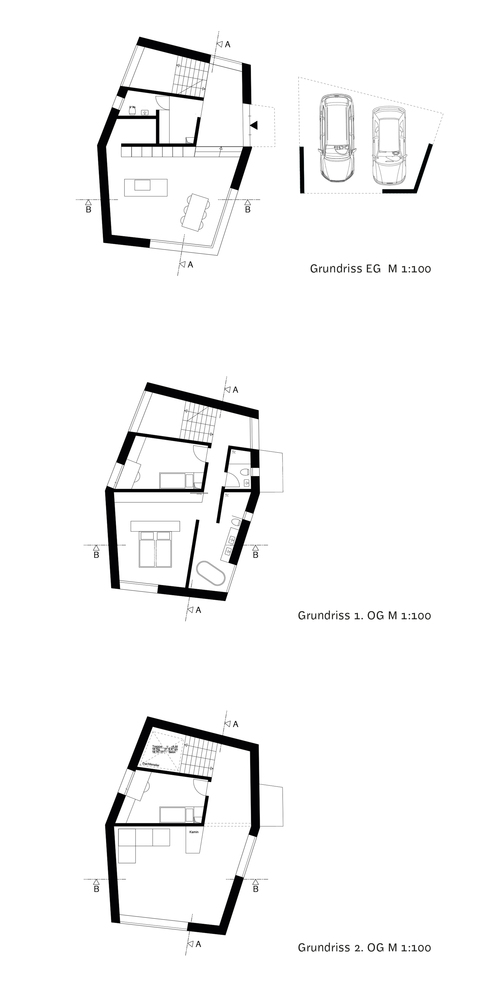 遵循设计一个简单、生态和可持续建筑的初衷,该建筑采用传统的砖结构“未进行隔绝处理”。定位为“被动式住宅”,没有配置新风系统,避免使用不必要的技术措施。由于窗户较深,所以不需要额外的遮阳板。由于面积限制,建筑平面为紧凑的六边形。