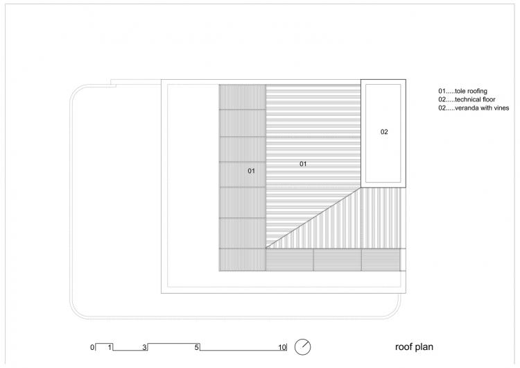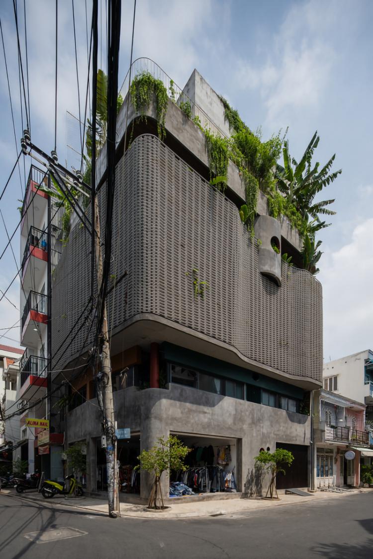 建筑所在的场地位于当地的市场附近,因此她希望将一楼空间作为商铺出租,并希望其它层的空间可以与外界有所区别,因此H2建筑事务所用绿树和通风墙体将整栋建筑包裹了起来,通风墙体本身则由铁质框架及水泥板打造。