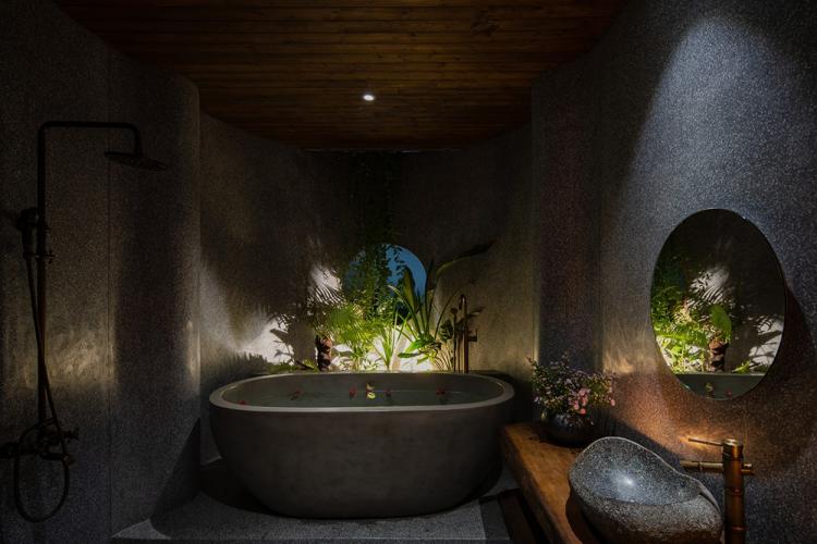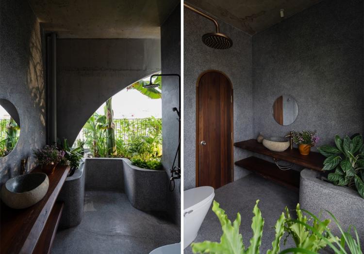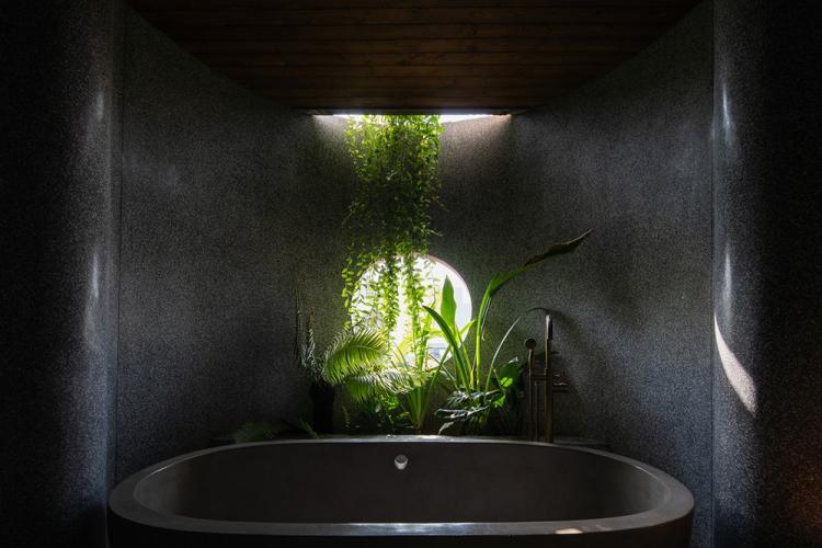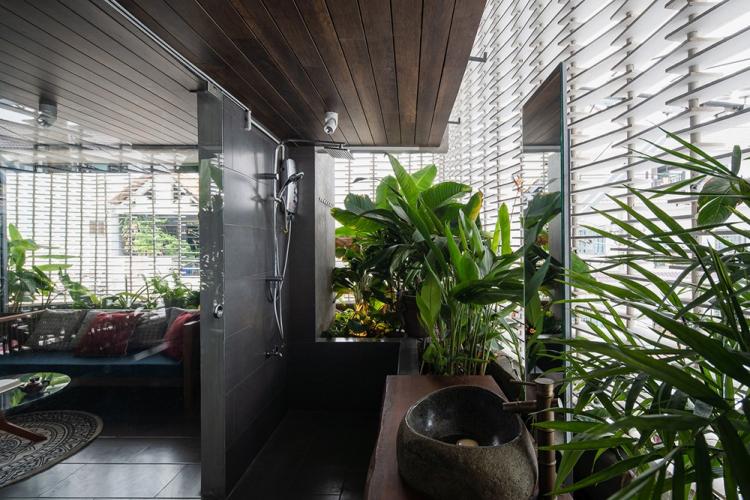 业主本身住在西贡,并有着十分繁忙的日程,因此她希望她的家可以有一处真正充满度假风格的房间,以此让其成为拥挤集市城镇中的一处温暖的亮点。也因此,所有的卧室、厨房、工作间和洗手间都以黄色暖光灯装点,并各自带有不同的绿植景色。