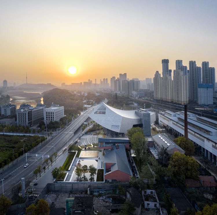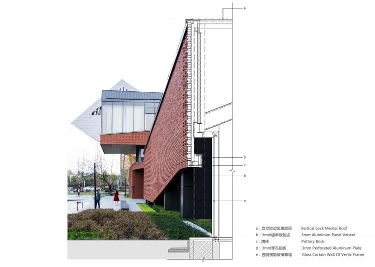 建筑立面采用陶砖幕墙和玻璃幕墙重新塑造,异型的钛锌板金属屋面,带来了丰富的第五立面,与张之洞博物馆张扬的体量相得益彰。