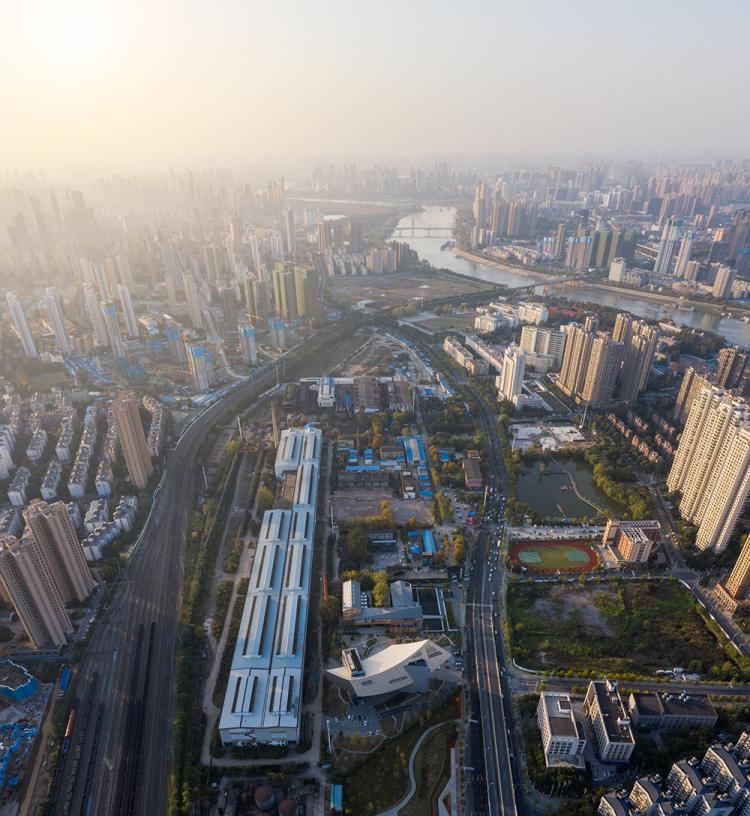 △ 先导区现状总图(北侧为三级工业遗产厂房、南侧为二级工业遗产厂房,东侧为张之洞博物馆)