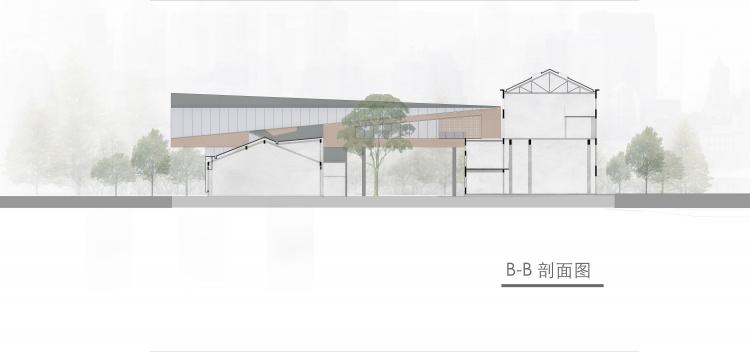 设计保留了原有的建筑结构和场地关系,尊重遗留厂房的体量,加入挑空的横向体量链接两栋厂房,形成全新的功能和流线。建筑围合出尺度适宜的内向性广场,与东侧张之洞博物馆完全开放的入口广场相互独立又彼此联系。新的屋顶体系从原有厂房上生长而出,注入历史厂房以新的时代活力。
