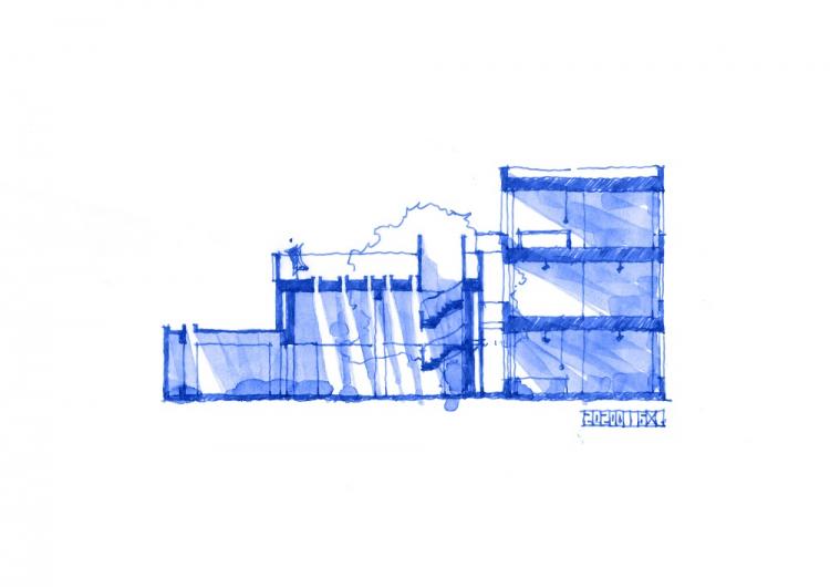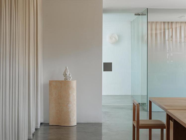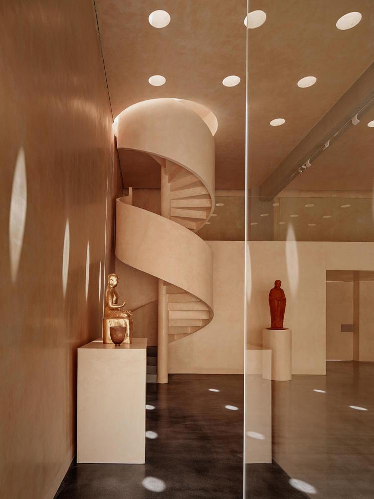 整个建筑在“玉兰树-佛像与光-屋顶露台-办公空间-时装展陈-玉兰树”的紧密相连中,构成了一个循环往复的串联流线,玉兰树贯穿其中,既是起点也是终点。
