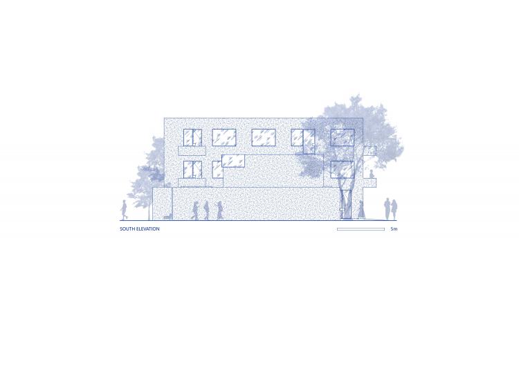 最初勘测场地时,我们就被建筑东侧硕大的玉兰树所震撼。彼时,我们并未辨认出其树种,只是尽可能地在设计过程中加以保护和利用,使之成为整个项目的标志物。直到设计完成、施工过半时,我们才惊喜地发现,这株与基地同龄的玉兰不经意间开花了,即便在室内也能感受到它扑鼻的清香。