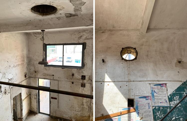 然而旧建筑的形体并不消隐,它由三个体块构成,由南向北呈阶梯状堆叠,我们依照层数,将其定义为1、2、3号楼。1号楼临街面有较多窗口,内部被墙体分隔为五个独立空间;2号楼东面有一颗高大的玉兰树,建筑内部为二层通高的空间;北侧的3号楼早前被改建为办公区,外立面为方窗阵列。
