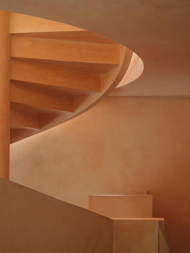 主展厅一隅有一段垂直向上的旋转楼梯。