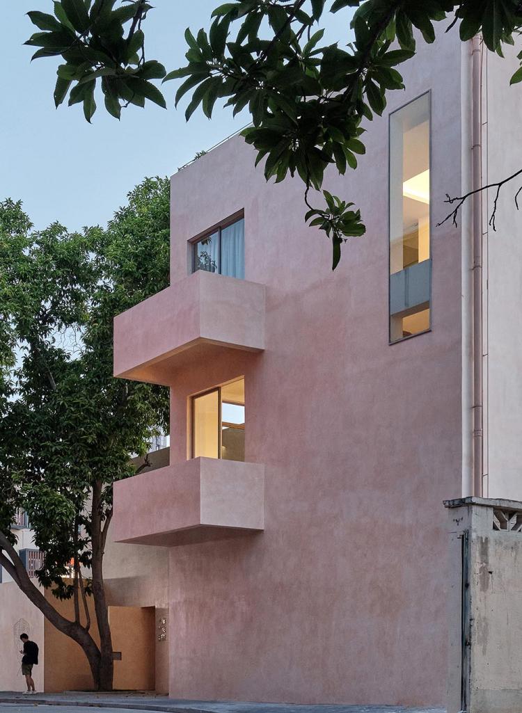 此外,由于项目周遭环境繁杂,建筑完工后,我们发现了许多有趣的“意外”:原本朴素的会议室在窗外红色建筑的映射下变为了粉色;低调的灰色窗框在外部环境的影响下也变成了紫色,业主决定将这些“意外”悉数保留,他相信这也是对“极乐场”寓意的一种诠释。