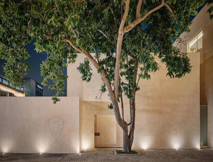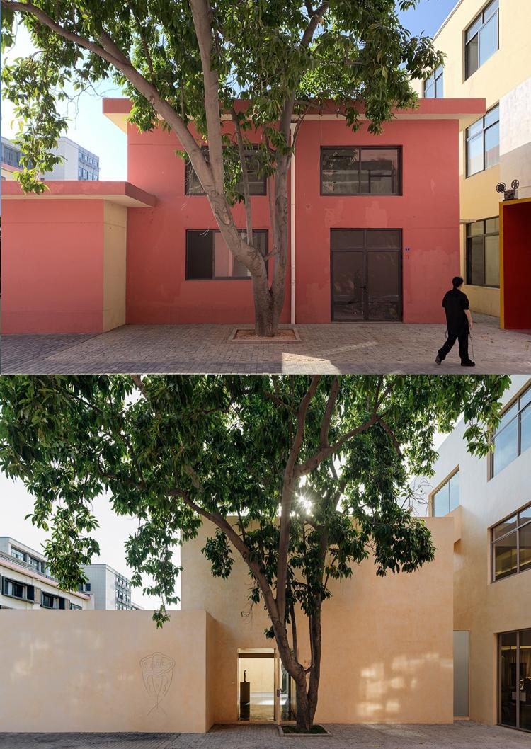 改造完成后,这棵玉兰树就像“极乐场”的法器一般巍然庄重。在高大繁密的枝干掩映下,简洁的建筑形体更显隐忍。沿街立面门窗“避虚就实”的改造,为整栋建筑添了几分引人探究的趣味。