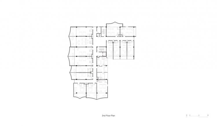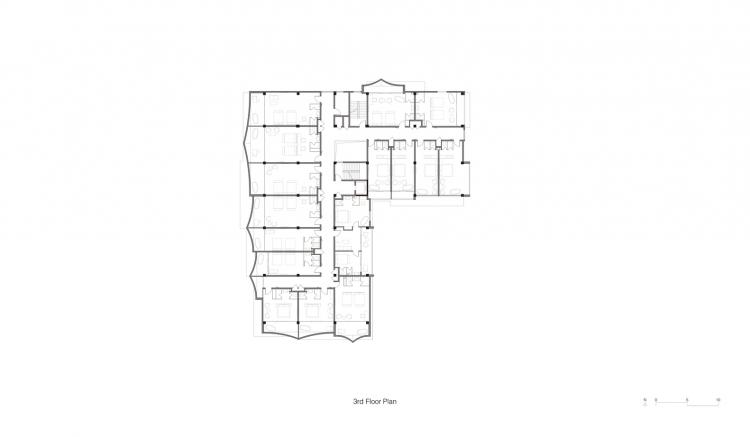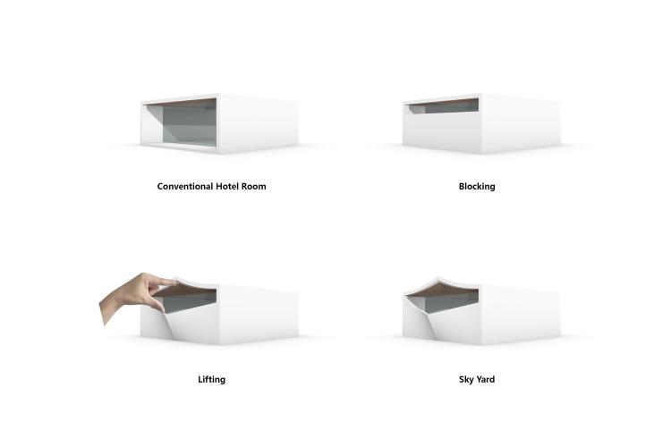 常见的酒店和民宿,每个房间都是一个外向的方格子,以便最大化摄取外界景观,酒店整体也往往成为方格子的堆叠。“外向的方格子”已成为当代酒店约定俗成的空间范式。