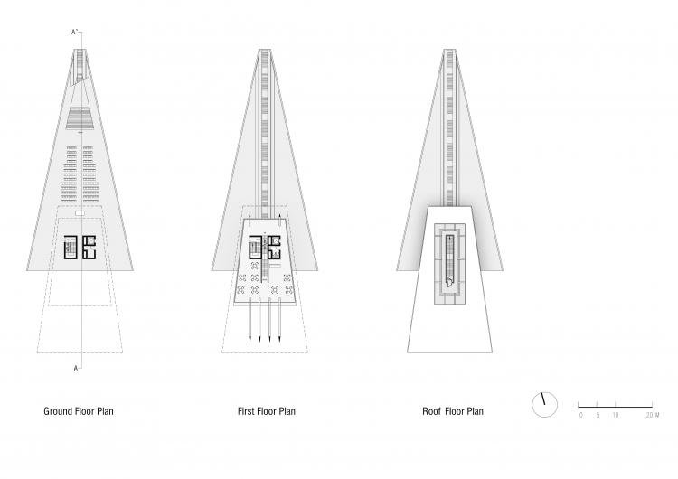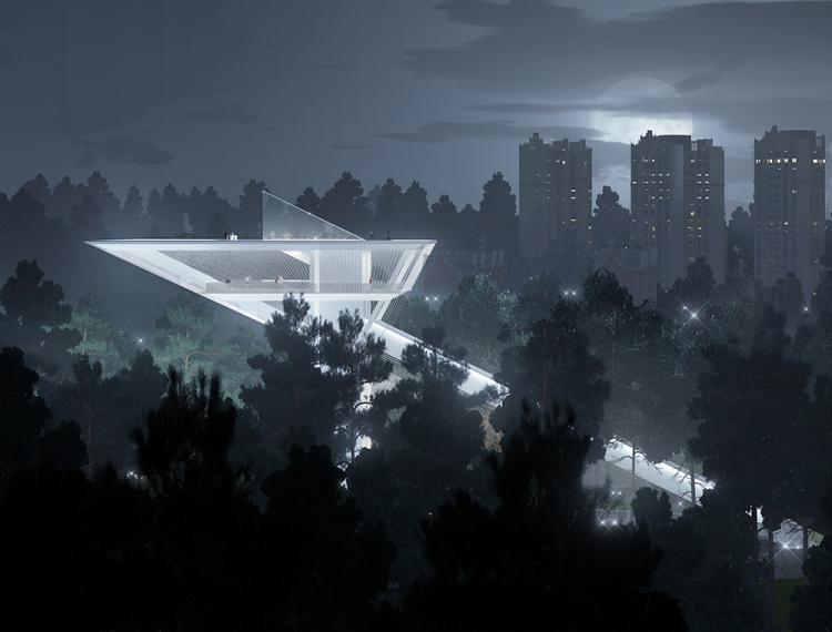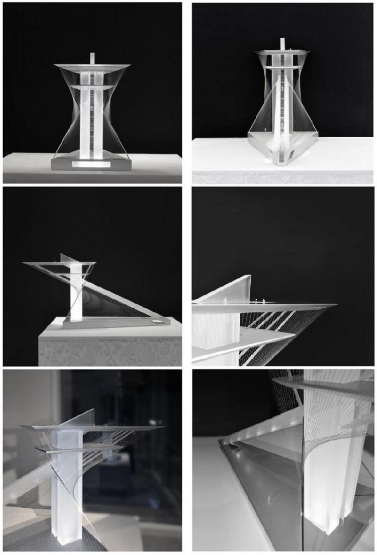 “未来”是充满无限种可能的,也是虚无缥缈的,它不是任何一种具体的形式。在这个以“未来”为主题的瞭望塔的设计中,造型和技术的实现都不是目的,而只是一种方法——建筑师最终希望传达的是一种积极向上地追求未来的精神。