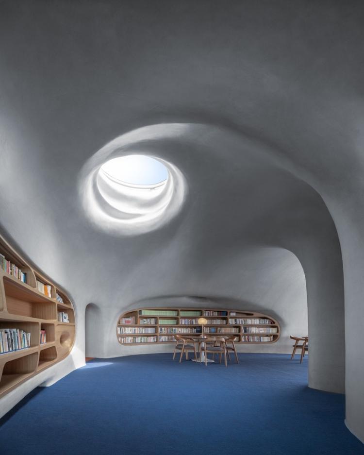 “海口云洞图书馆”,让人们从熟悉的城市现实走近建筑,开启一段新的时空之旅。洞型空间的层次和复杂性将空间一层层拉开,也提供给读者一个想象力的失重场。