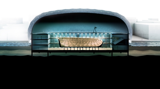 挖掘后的发现物将被放置在展览空间周围,旁边还有一系列私人研究设施,比如实验室和水下考古学家培训空间。