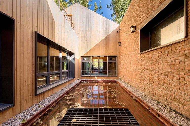 △ 中心的水院,把原民居拆下来的屋面瓦铺到了池底