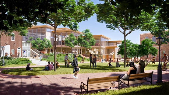 为了将新大楼与现有校园连接起来,新校区内的红砖小径将贯穿校园内部。