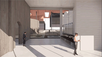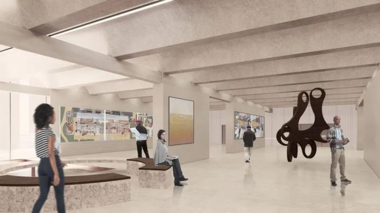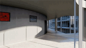 △ 由入口步入季度画廊,路过通透的门厅,左边是筒仓展览馆,右边是新馆画廊
