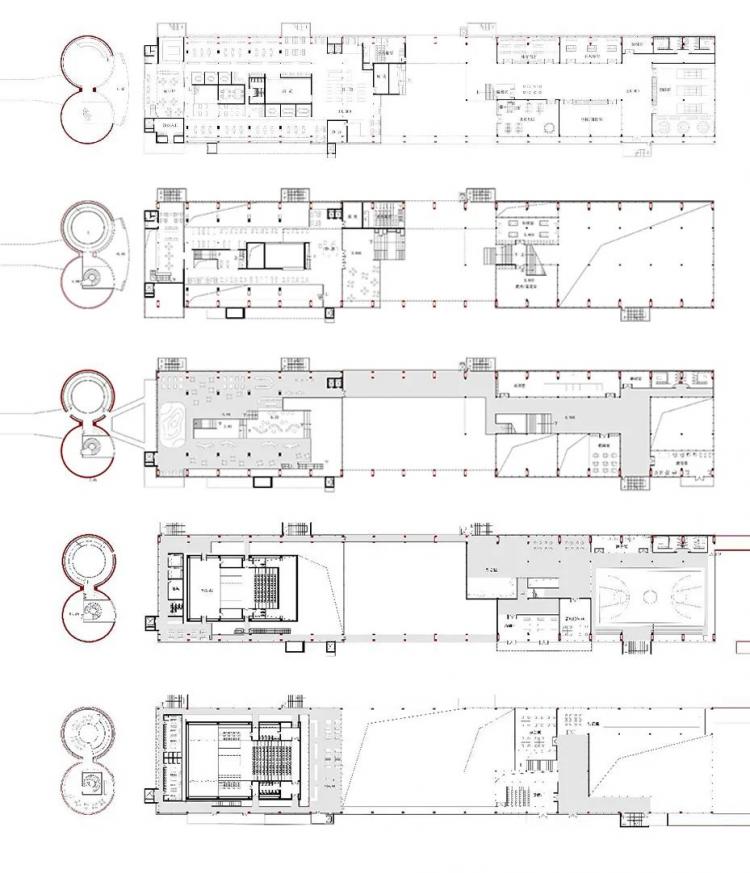 △ 文体中心在不同标高的平面,在不同的高度,文化和体育中心在南北向的互动均有不同