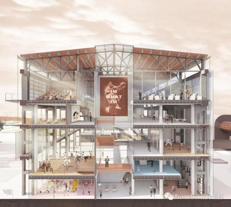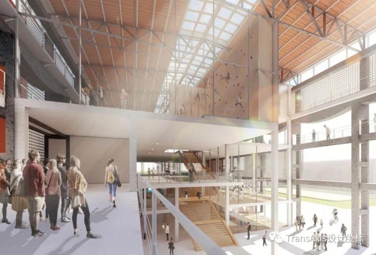 体育中心不同的活动室处于不同的标高下平台,在满足运动功能的同时又创造了不同的观看关系。