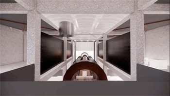 原来的筒体回转窑变为了博物馆内最具有游览特色的交通空间——“时空隧道”。