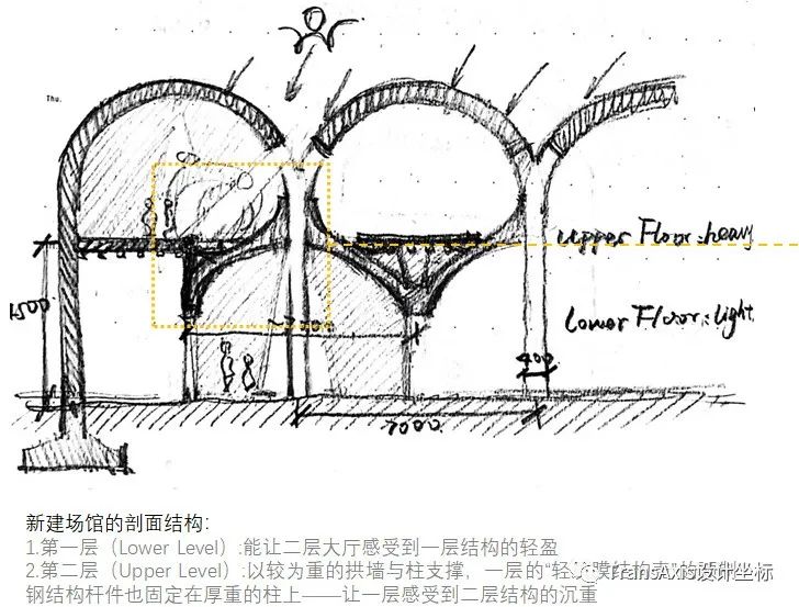 △ 从主要剖面剖透视中可以感受到,游客不同的展览空间对光线的不同感知