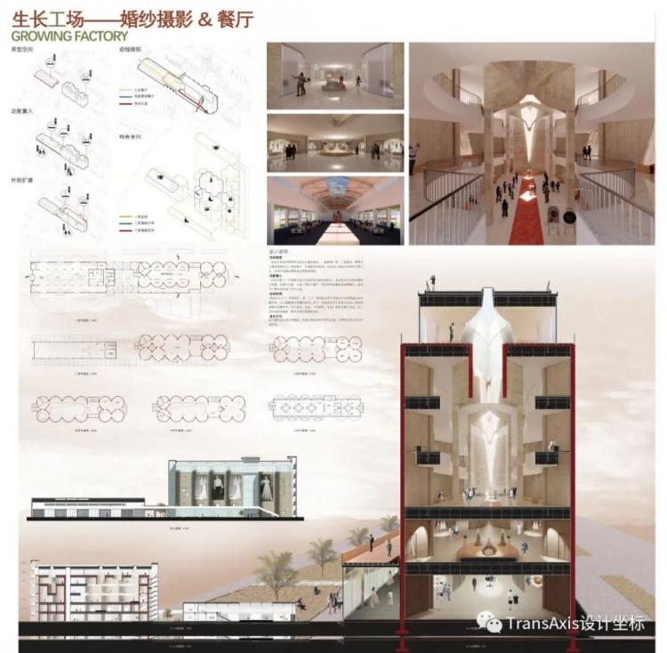 二层的婚纱摄影展示层,不同筒仓单元可以接待不同批次的消费人群。