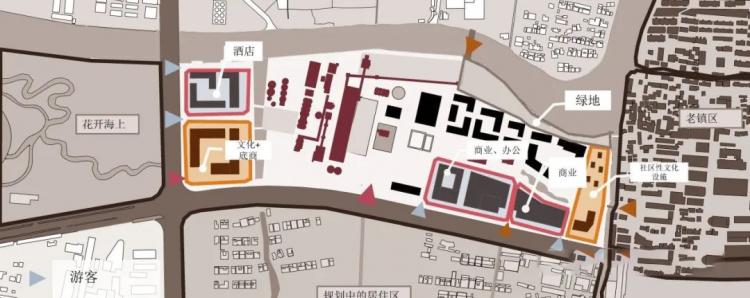 △ 改造后的功能分区与文化轴线位置