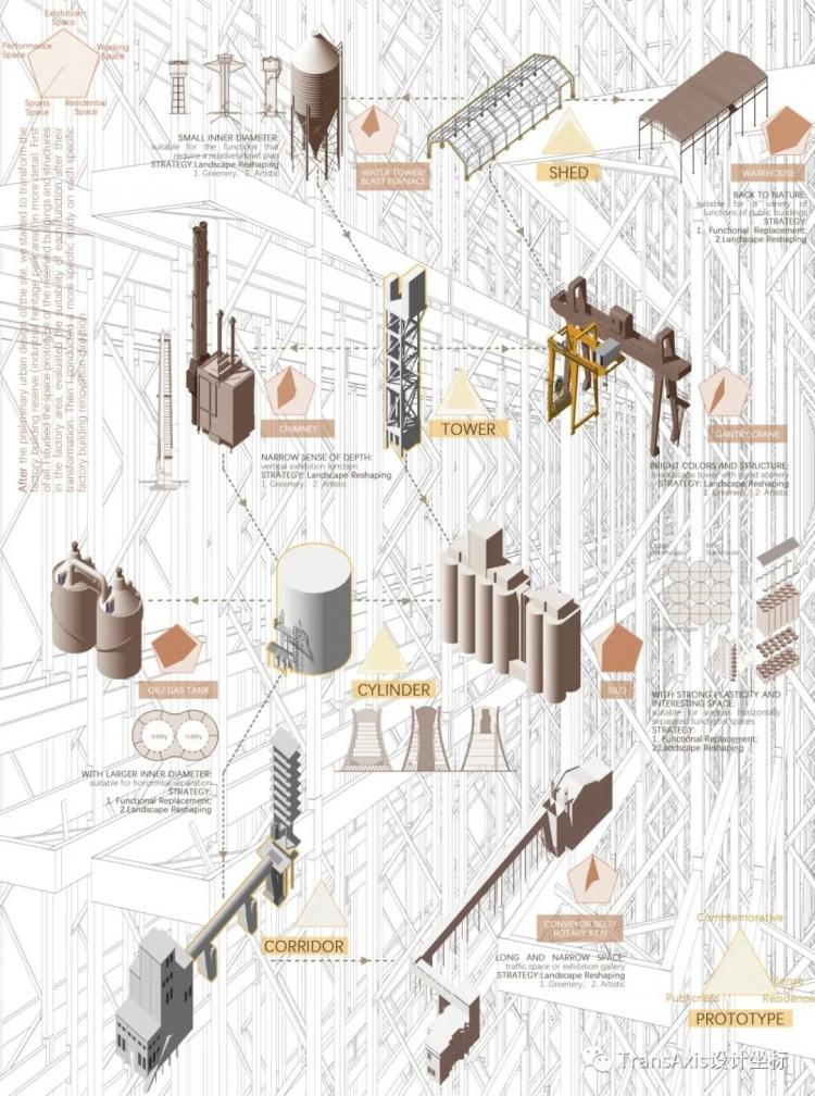 面对突如其来的全程网上教学的转变,不得不说这样一个需要大量现场调研的课题确实面临着巨大的挑战,所幸课题组的同学们克服了这个难题,还充分利用了线上展览的优势,在视频中展露了许多巧思~ (每个方案都附上了精美视频,欢迎点击播放!) 接下来请欣赏各式各样的筒仓、联合仓储厂房、预热塔回转炉、冷却机房们的“变形记”!