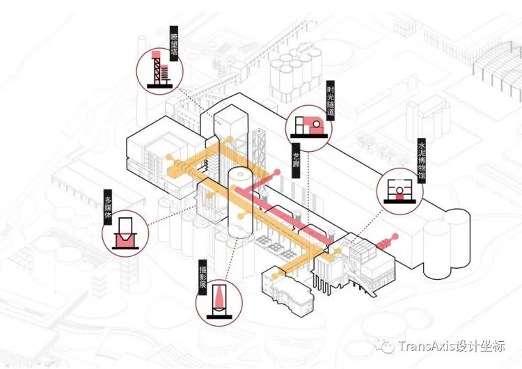 在金山水泥厂完成改造之后,在未来将以“工厂+”的模式运营,化解镇区的疏离感与碎片化,整合利用周边的各种资源。