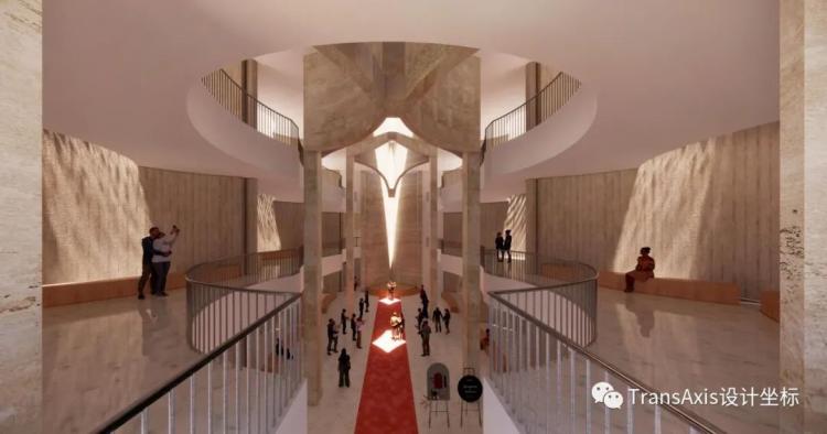 氛围塑造根据展览功能不同以及游览方式不同,运用了不同的自然光和人工光线。