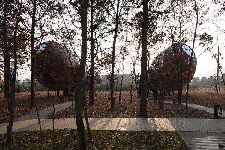 初始设计时,业主希望建筑采用拟态形式,与大自然的元素产生联系。我们将住宿的感受、空间的特点、视线的方向等因素综合思考,最终形成了种子木屋这种或许并不常见的建筑形态。