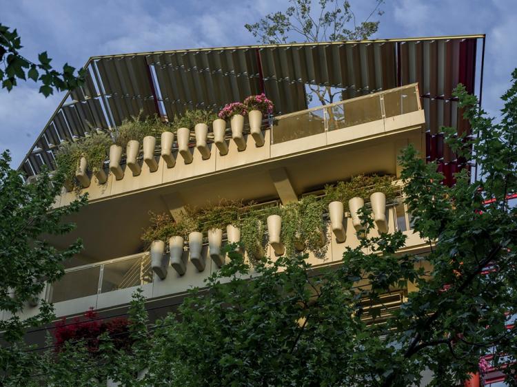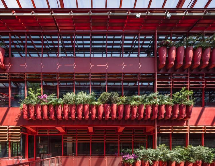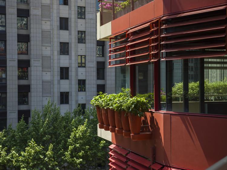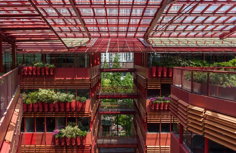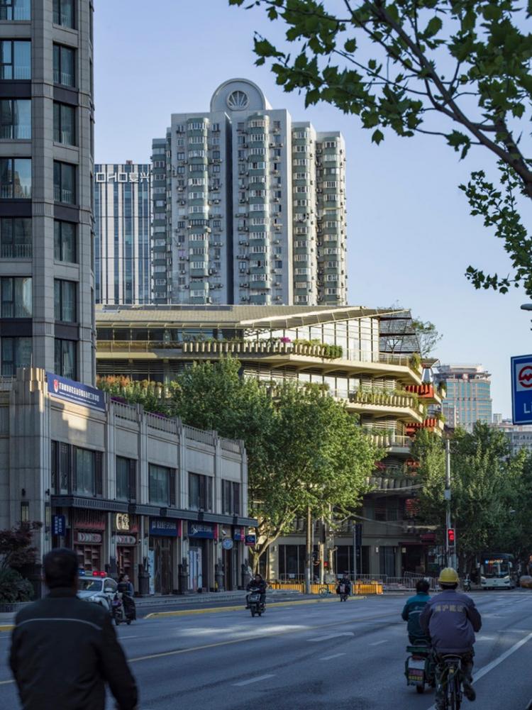相互面对的商店,办公室里的活动,屋顶上下的餐馆,创造了熟悉而有自然生机的街道,以愉悦步行为目标,在马当路和淡水路之间形成一段具有吸引力的旅程。可调节百叶窗板条形成的光影游戏,在巨大花盆围绕的窗前上演了存在和活动的神秘性,因而被保护,同时创造了一个不同花卉和季节色彩的植物艺术博览景观。