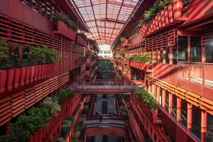 有1000个红色罐子的街道。原法国租界在上海这一地区打上了自己的烙印。对于法国建筑师让·努维尔来说,设计一个与该地的城市化、法国梧桐、狭窄街道和宜居的景观相协调的城市空间显然是一份殊荣。在马当路和淡水路之间的创造是十分具有吸引力的:一条近路作为城市和商业走廊;能够激活消失的周边环境、完整重构并焕然一新的空间序列;一条又高又窄被遮盖和保护的街道……