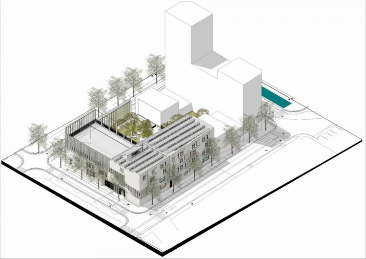 安托万-德-拉菲学校群占据了新地中海区入口和由城市学家伊夫-莱昂协调的 "居民区公园 "之间的战略位置。