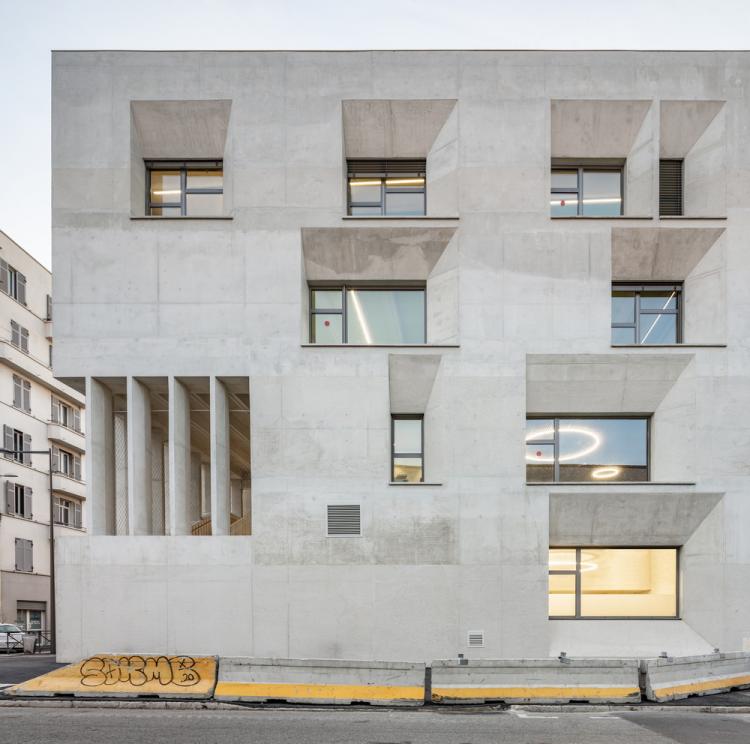 这所马赛的矿石小学,用易维护而美观的设计,尝试成为“让孩子喜欢上学”的空间。它容纳了22间教室和公共区域,具有严格的几何形状和壮观的体量。