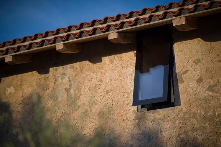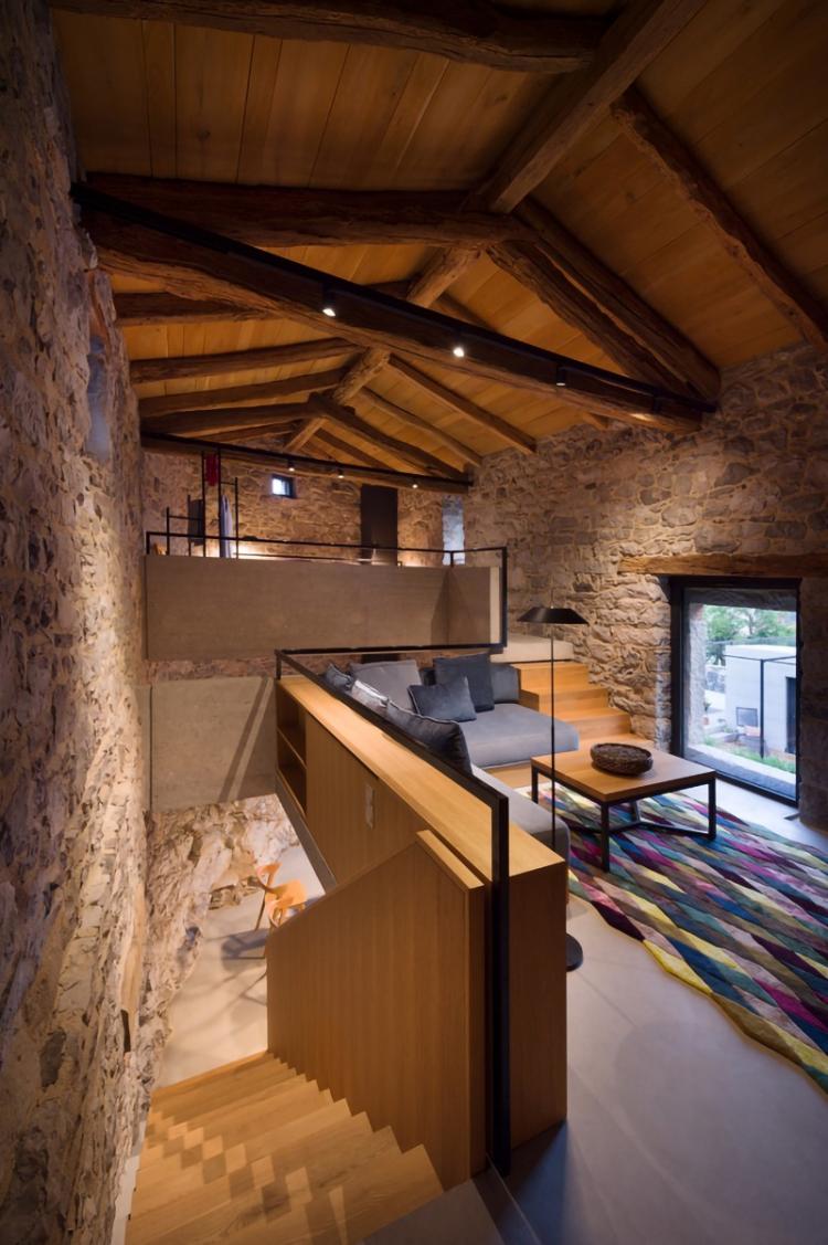 整个项目使用的主要材料是基本的和持久的;混凝土基础,自然橡木饰面将黑色铁制框架细节柔化,保证不无论在哪触感都是最重要的。新材料的坚固性和新旧连接的处理暗示着房子经受住了时间的流逝,歌颂着它的印记和伤疤。旧房子内部使用的混凝土加固了石头。在外面,新的建筑结构,浇铸在裸露的混凝土上,很像它原始的样子。
