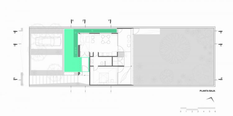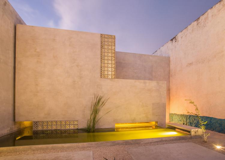 该建筑隐匿于街道中,并与其相邻建筑的墙形成了一个具有公共属性的“小广场”,这也是设计师传承传统尤卡坦建筑的特色。