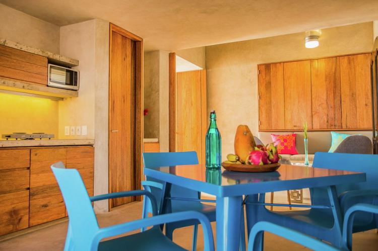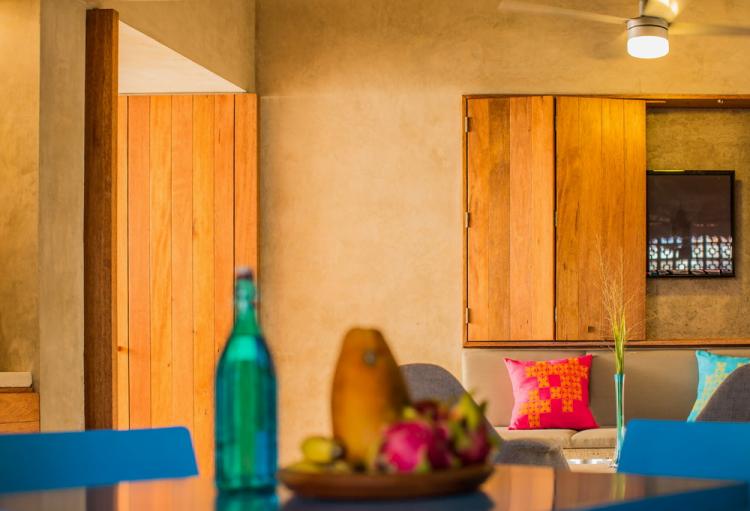 建筑的门,家具还有饰品的色彩选择都与当地的文化工艺息息相关,并与庭院植物达到和谐。