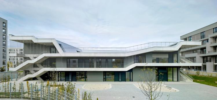 毗邻赫宁格公园和萨克森豪森区,项目规划的思路是在都市区建立一个立体的多层结构,以此来提供对应不同功能的不同空间——不论是学习还是玩耍,室内还是户外。