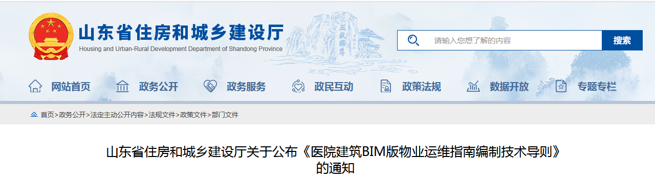 山东省住房和城乡建设厅关于公布《医院建筑BIM版物业运维指南编制技术导则》的通知