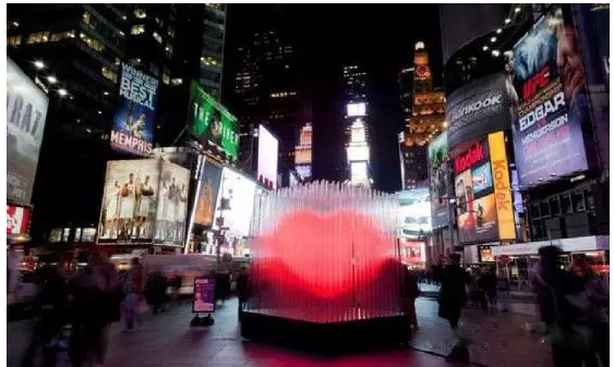 时代广场红心造型:它是由一串玻璃柱,里面透着霓虹灯,散发出一个立体的红心。这个红心呢,就是由自适应体量族和基于幕墙公制嵌板填充图案族完成的