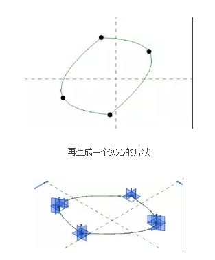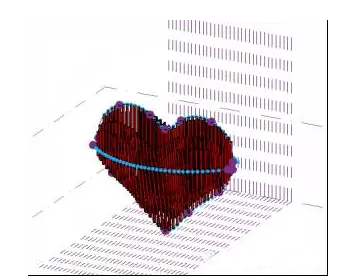 用参照点和参照样条取现,绘制出一个心形因为看到的心形是一个立体的效果,所以利用参照线绘制出两个半圆